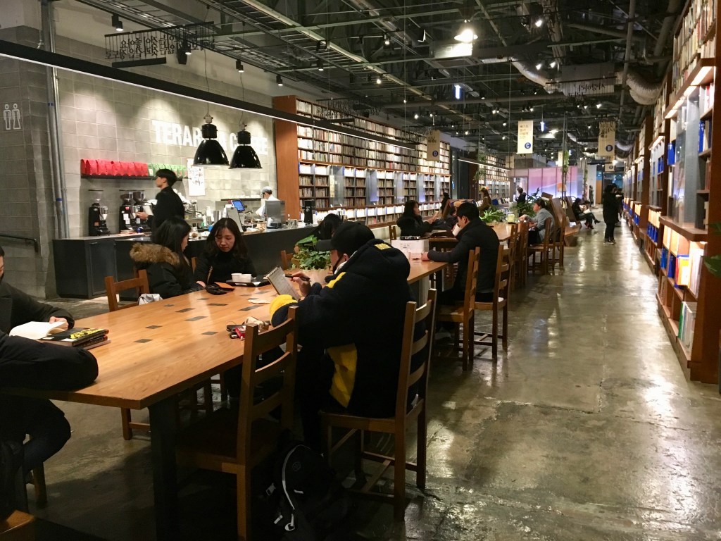 This space is an amazing mix for working, networking, relaxing and….enjoying a good cup with an exquisite piece of pastry. I’t the largest café I’ve ever seen. What makes it so unique is that the owner bought an old factory from the Kiswire Corporation, and restored it into a kind of industrial museum. Not only is it home to TERAROSA Café, but also to YES24, a humongous used bookstore – my friend Sun Young called it a “virtuous circle” – how true.
