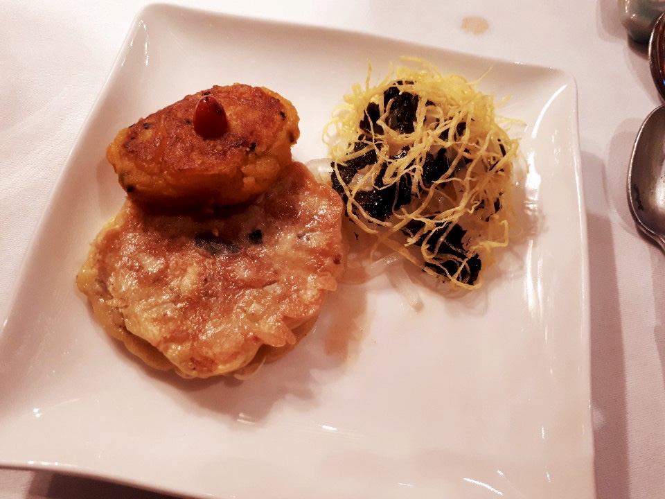 My friend Eunjae’s family took me out to a mind-boggling dinner. While I have been to many Korean restaurants by now, I’ve never experienced Korean fine dining. It is interesting that our restaurant was located off a freeway, together with several other high-end dining places. We had a choice between two main courses. But that choice only had little impact on what followed: A procession of super tasty and beautifully arranged courses and side dishes, expertly served by attentive waiters.