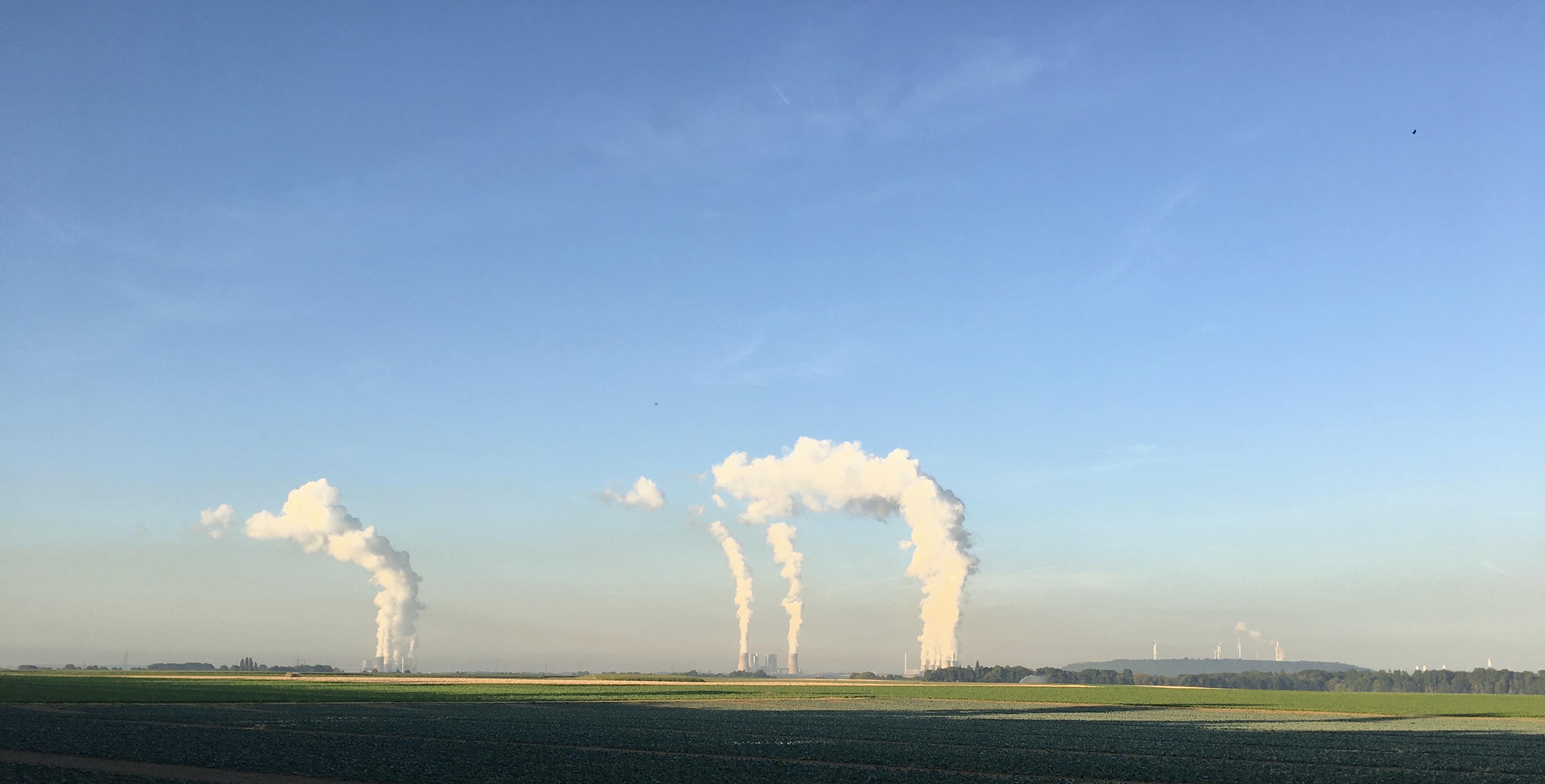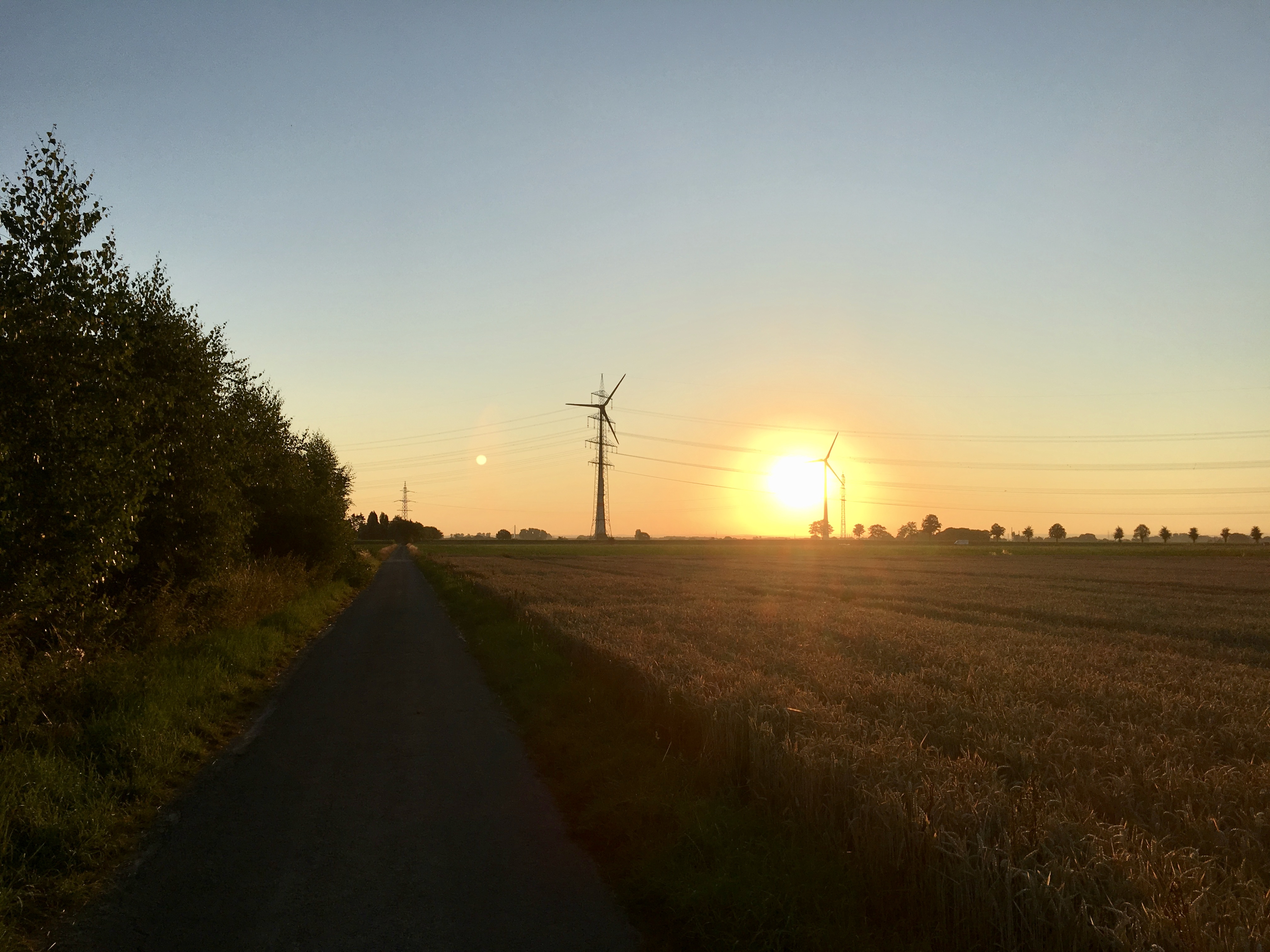 The smokestacks are from the largest cluster of power stations in Germany – near Düsseldorf (my former hometown), fired by soft coal which is quite controversial these days. The steeple is in the small town of Neukirchen, where I also shot the sunrise during an early summer walk with my wife – jet-lagged from our flight from Vancouver 🙂