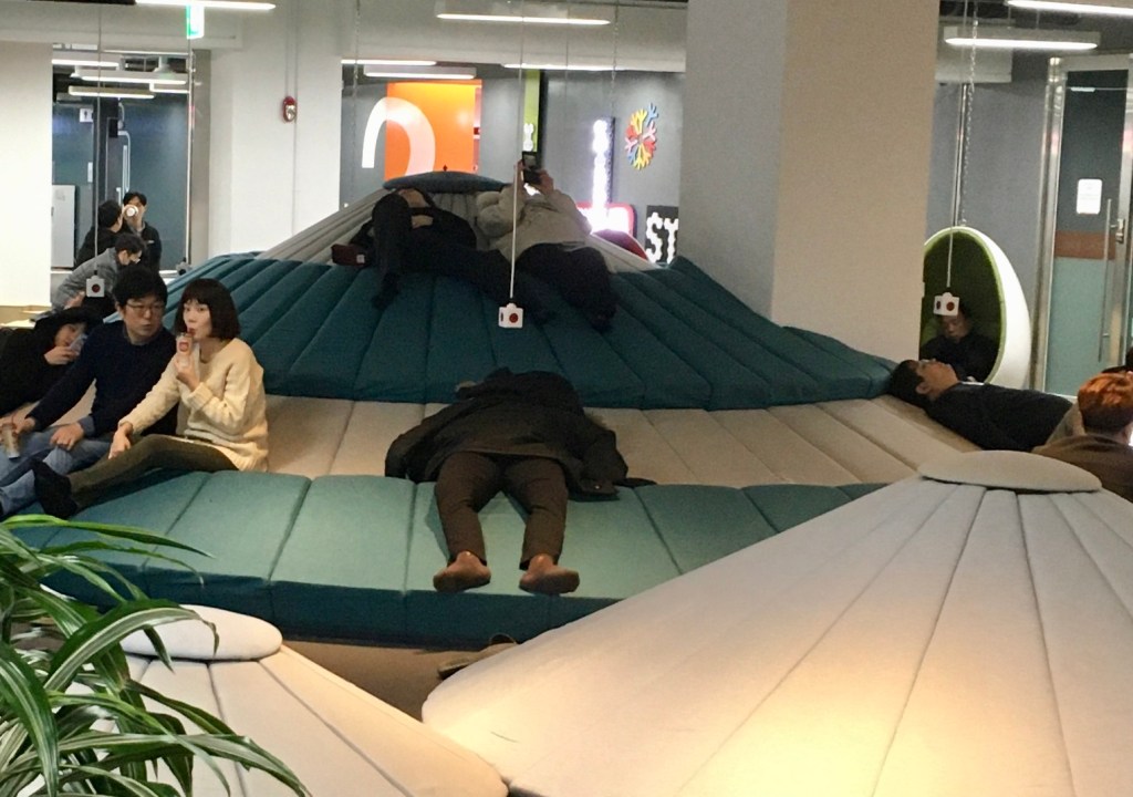 Koreans have very busy lives – sleeping on the subway, in cafés and here is common