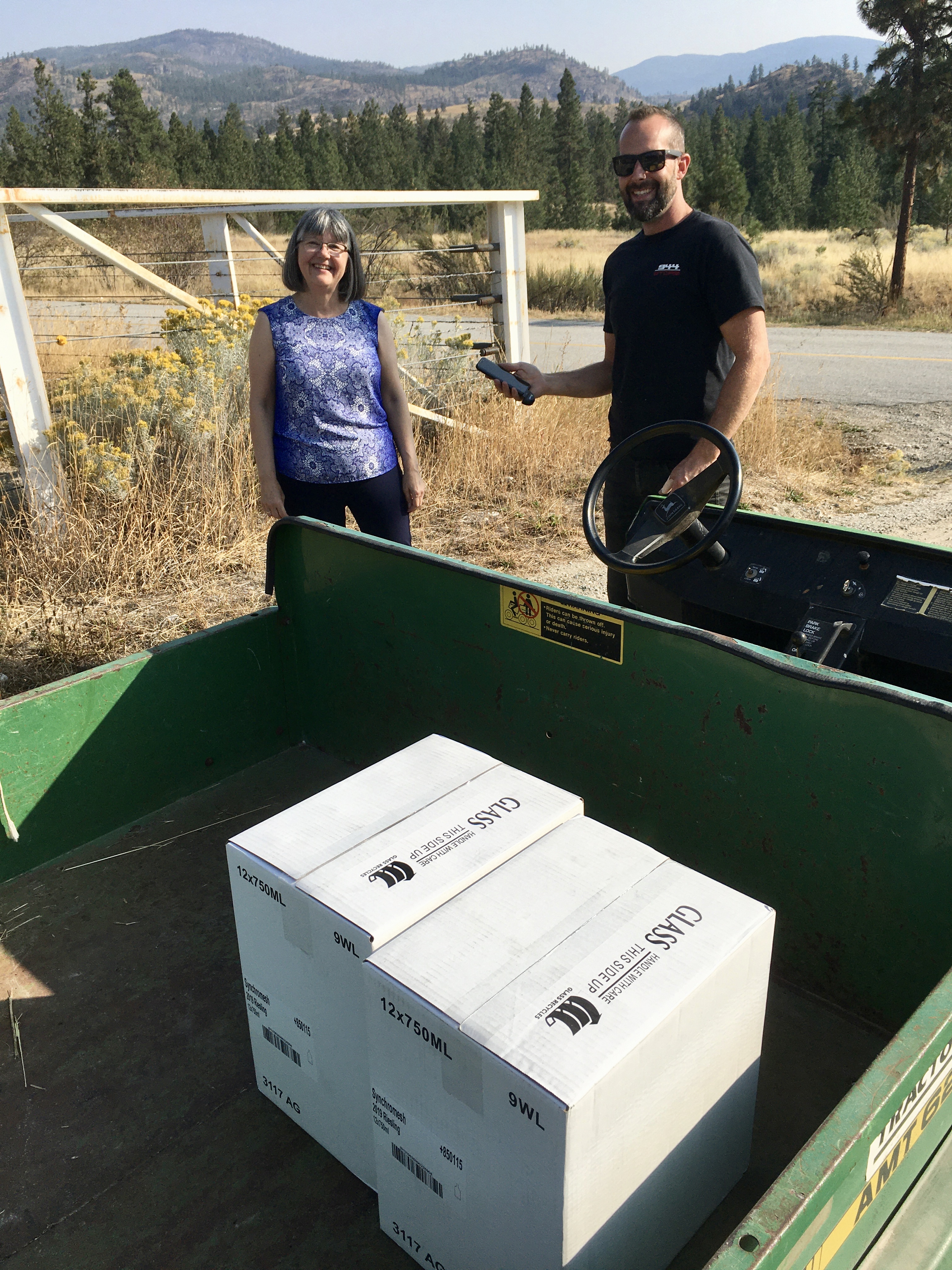Peter, the service manager at Canadian Tire in West Kelowna is one of them: The auto shop opens at 8:00 am, but his door was open at 7:30 am. He listened to my story that we were in a pickle, needing new tires for our wintery drive back home to Whitehorse. Next he came out to our vehicle, assessed our tires, then gave us two options for new tires, and slotted us in for the next morning. We’re on our way with safe tires. I let the store’s General Manager know what Peter did for us, and we gave Peter a bottle of Synchromesh 2019 Riesling.