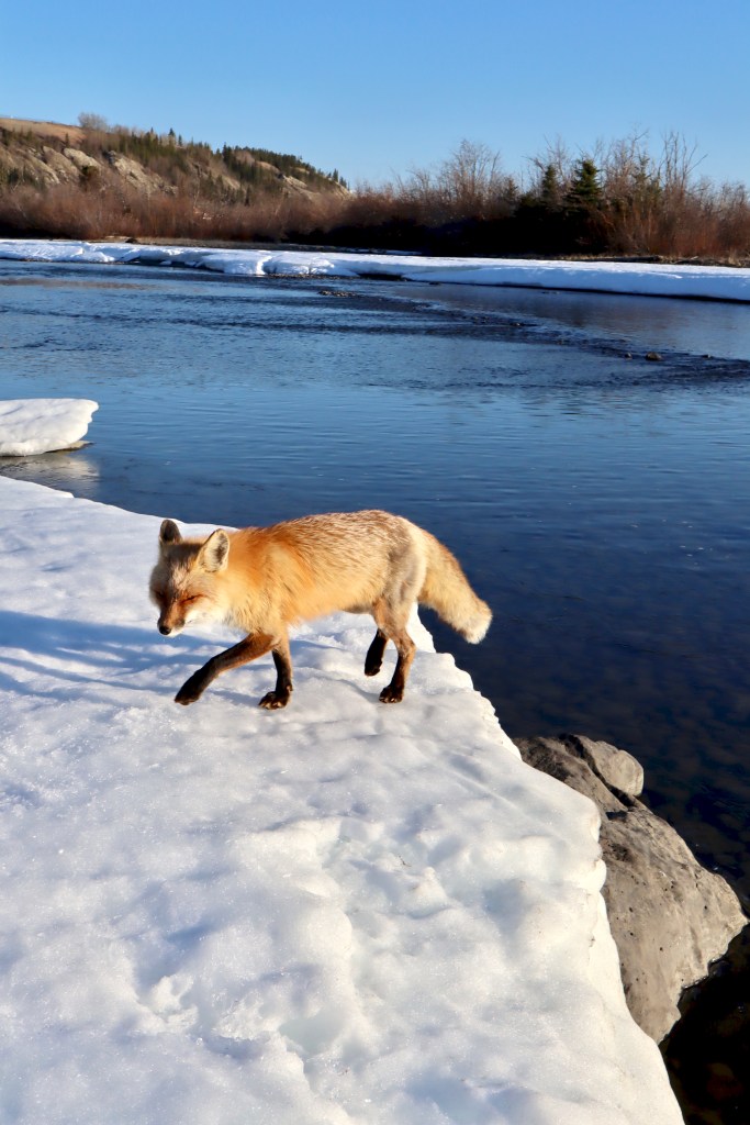 Foxes are almost tame in our town. They have established cookie-tours and sometimes jump on car hoods to warm up. No, they don’t eat your cat. But coyotes might.