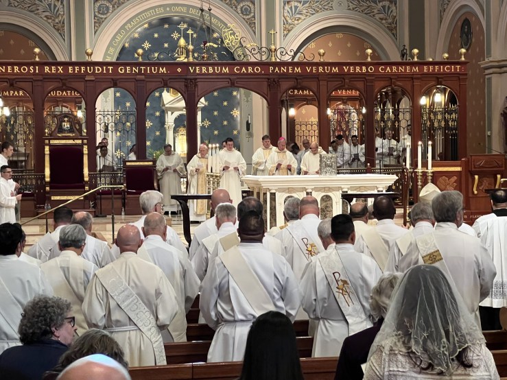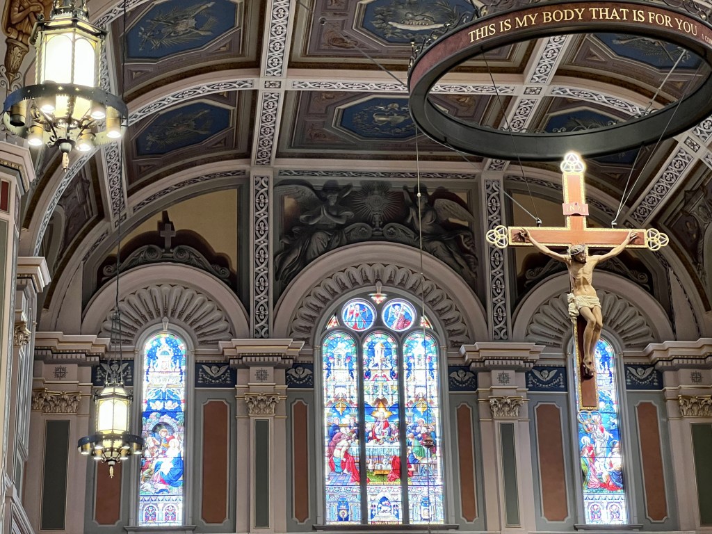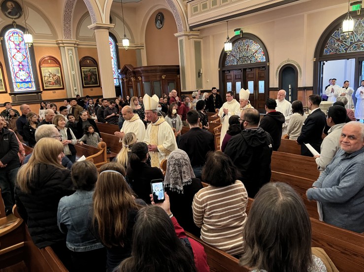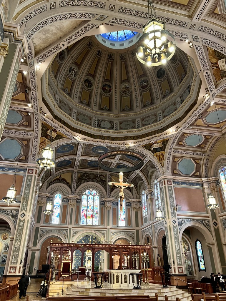 My wife and I recently spent a week Sacramento, California’s capital. We like to visit churches – mostly for their atmosphere, architecture and historic ambiance. So we stumbled into this extraordinary mass at The Cathedral Of The Blessed Sacrament: Jaime Soto, the Bishop Of Sacramento did the “Blessing of the Oils”, providing the whole Diocese of Sacramento for a year. All priests of the diocese came for their Renewal of “Commitment to Priestly Service”. About 30% of the congregation were Hispanic, and the vast majority of all present knew the liturgy. Masses in Spanish and Chinese are also being offered by the Cathedral. (all photos are my own)